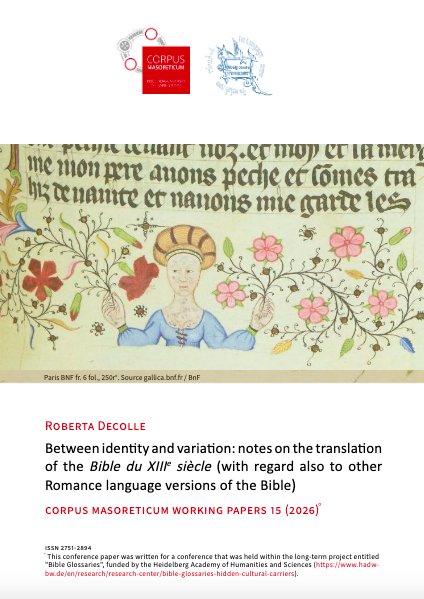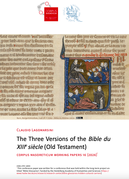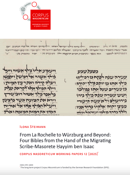 The Corpus Masoreticum Working Papers include peer-reviewed articles of primarily the Project's team members in the fields of Bible text tradition, Masorah research, commentary literature, digital humanities, and editorial practices. Their aim is to document, visualize, and communicate the results in the various research areas of the staff members, offering their latest insights in accordance with the project's aims and methods.